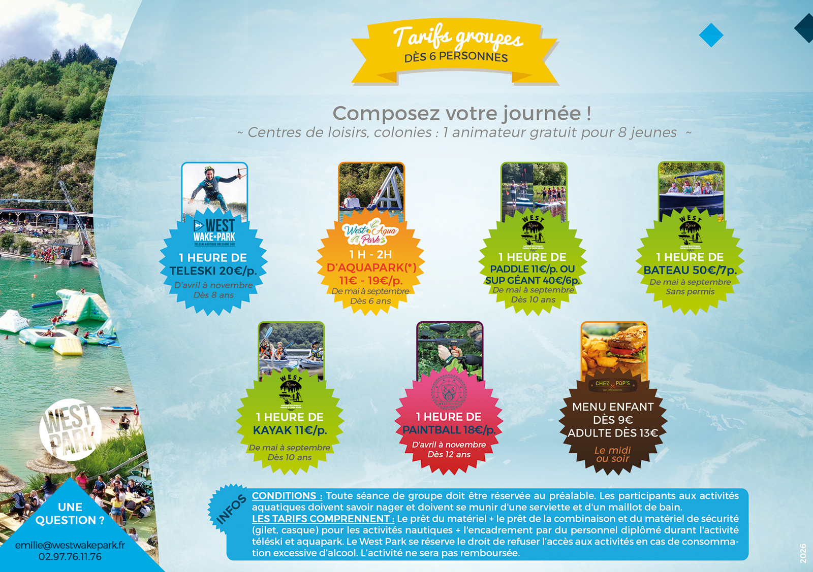 Contactez-nous par mail à emilie@westwakepark.fr