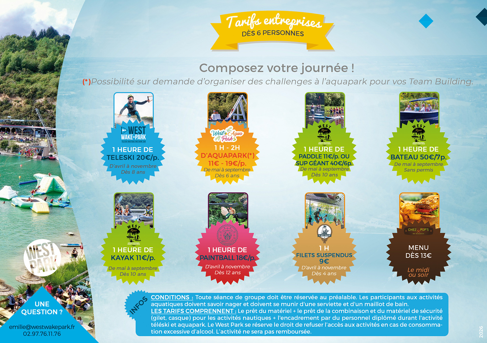 Contactez-nous par mail à emilie@westwakepark.fr